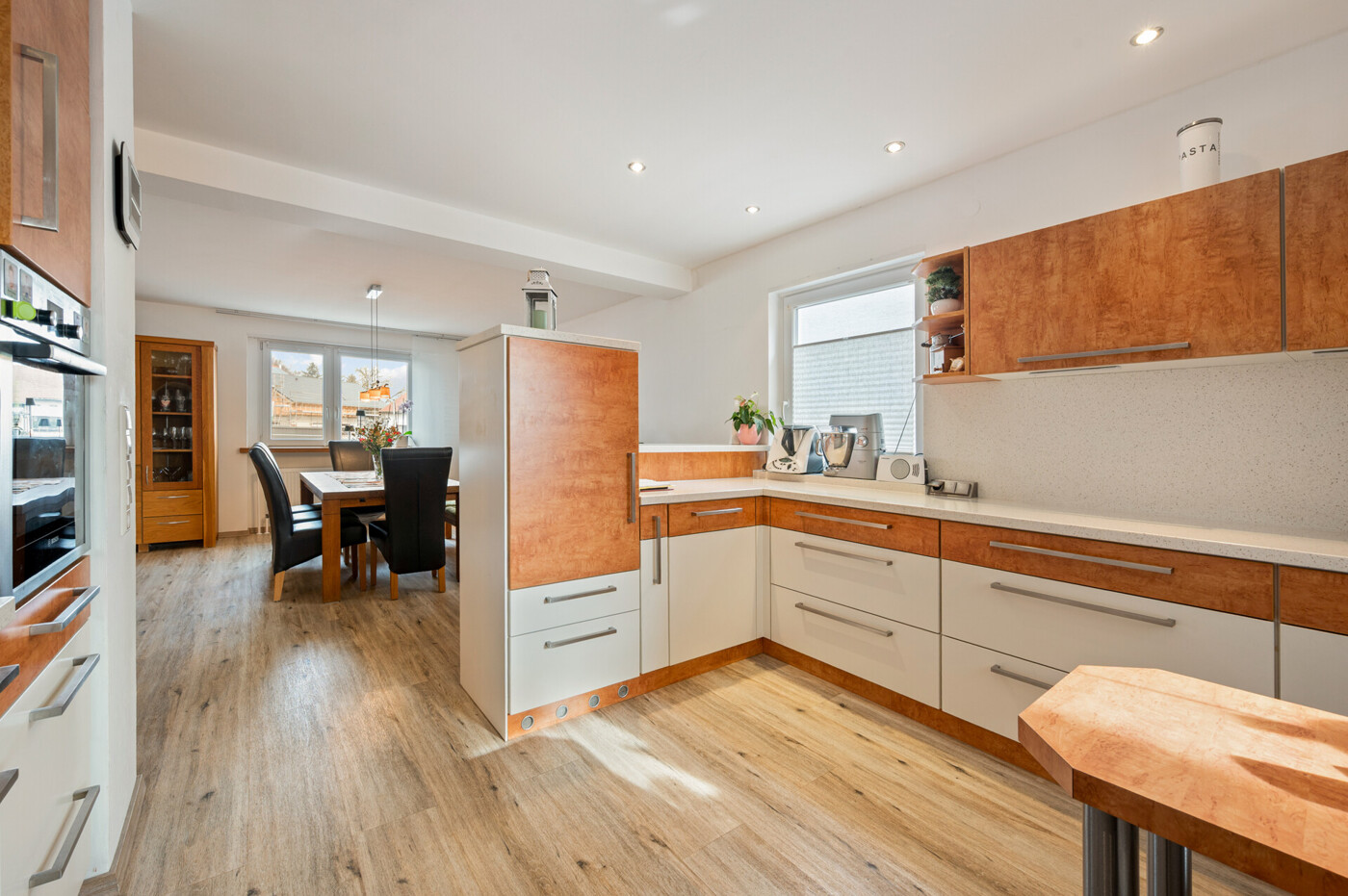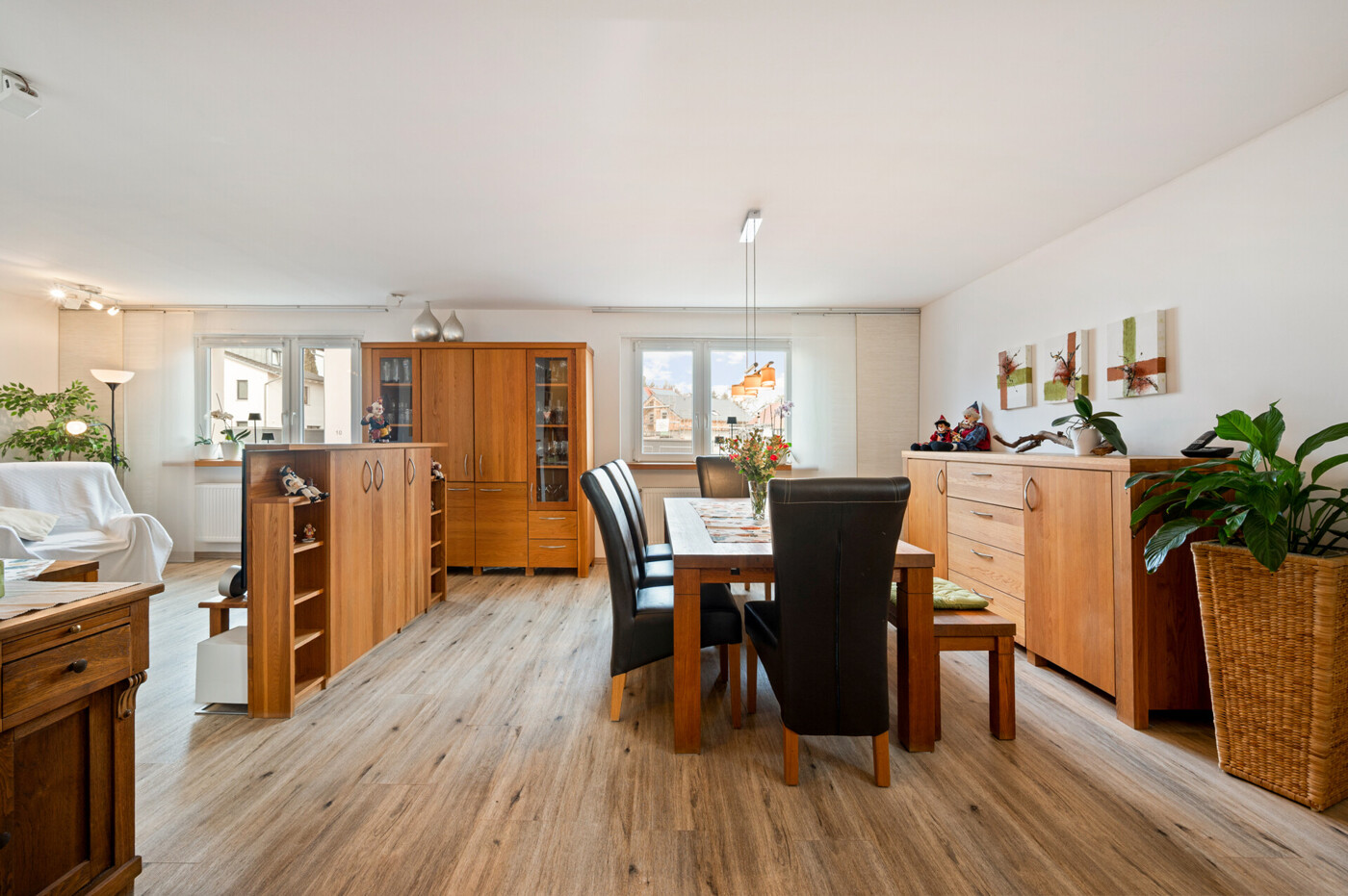 Besonders attraktiv ist das Potenzial für Mehrgenerationenwohnen: Dank der großzügigen Wohnfläche, der drei Badezimmer und der bestehenden Nutzung durch zwei Familien eignet sich das Haus ideal für gemeinsames Wohnen mit klaren Rückzugsbereichen. Ob Eltern und erwachsene Kinder, Großeltern oder Wohnen und Arbeiten unter einem Dach – hier sind flexible Konzepte realisierbar.